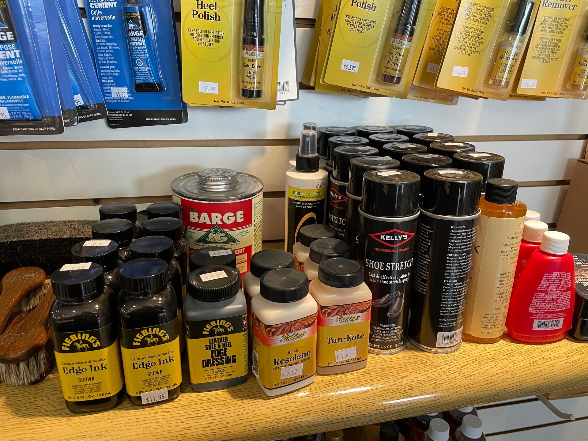 Shoe Laces, Insoles, Arch Supports, Shoe Polish, Shoes Shine Brushes and Rags, Shine Sponges, Mink Oil, Shoe Repair, Acrylic Finishes, Stain Wax, Shoe Glue and more